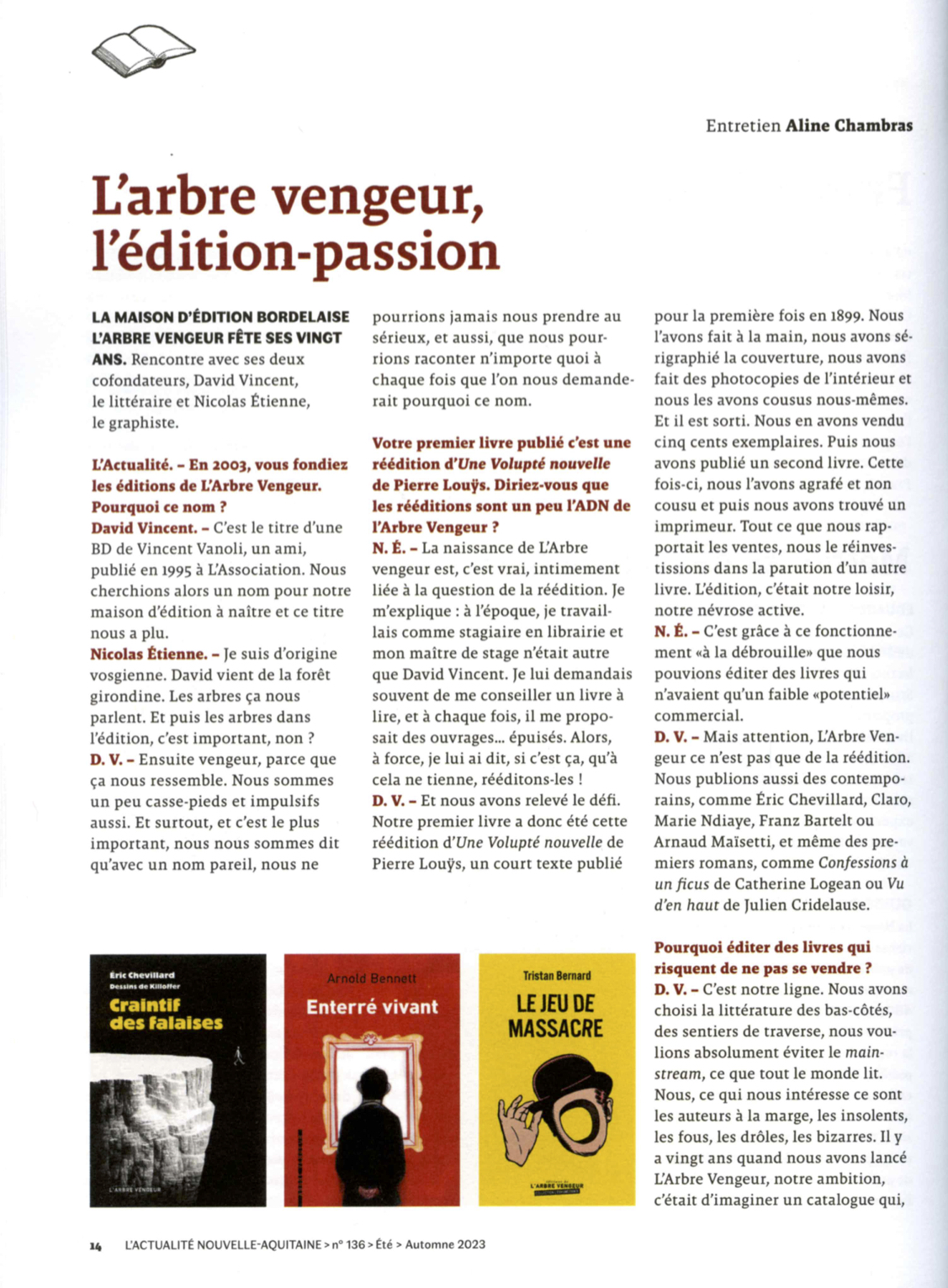 L’Arbre vengeur dans l’Actualité Nouvelle-Aquitaine