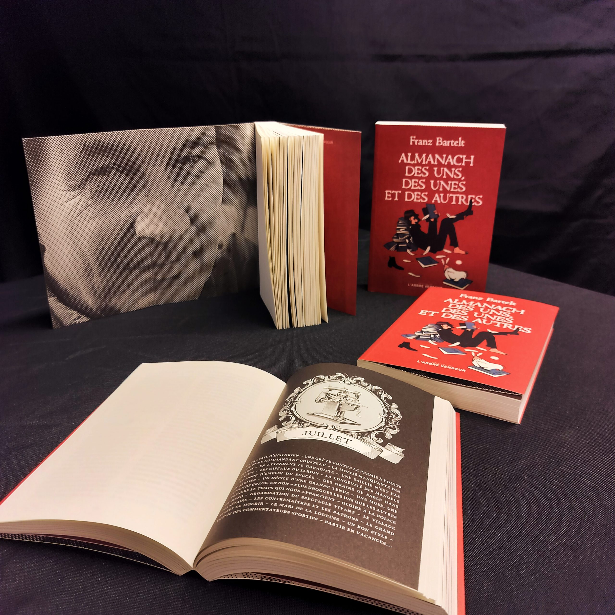 Nous sommes un peu plus qu’heureux en cet automne (déprimant) d’éditer un livre, qu’on peut dire exceptionnel, de l’un de nos écrivains favoris : l’Almanach des uns, des unes et des autres va permettre, pour la première fois, de découvrir les cahiers (pour l’heure absolument inédits, jamais montrés, jamais sortis) de Franz Bartelt, œuvre au long cours sur laquelle il se penche depuis des dizaines d’années, y consignant ses réflexions, ses ébahissements, ses colères, ses idées saugrenues, son regard sur ce monde étrange qui est le nôtre, tout cela vu depuis son repaire ardennais. C’est drôle, cocasse, emporté, ironique, ça parle de livres, de gens sans importance, de voisins et d’amitié, c’est du Bartelt à l’état pur.