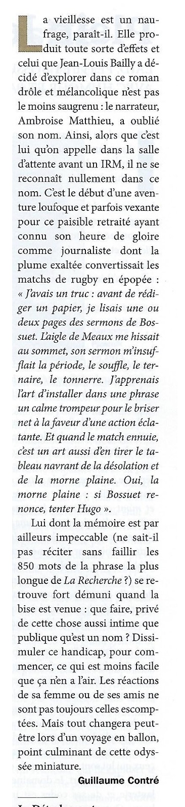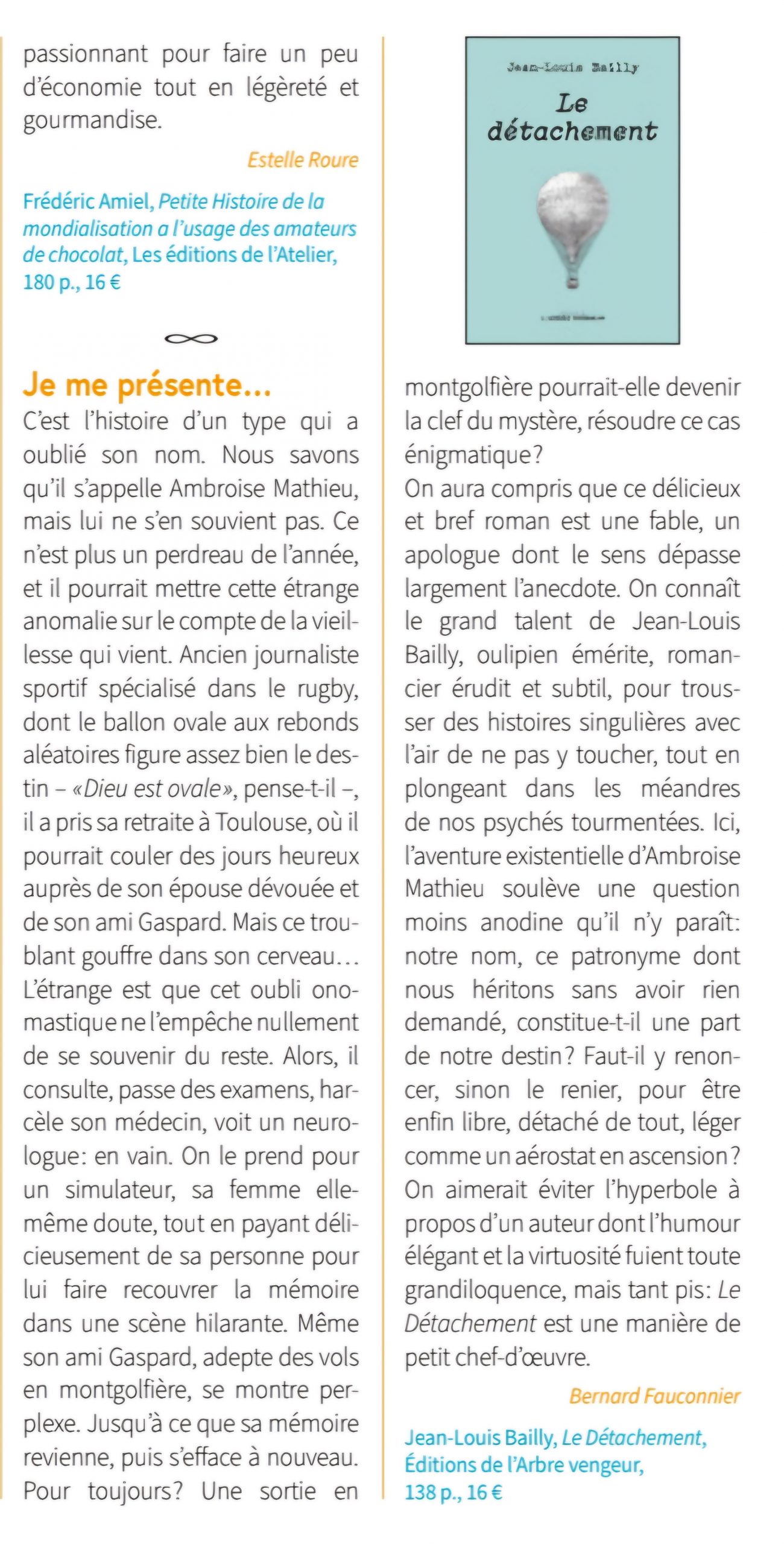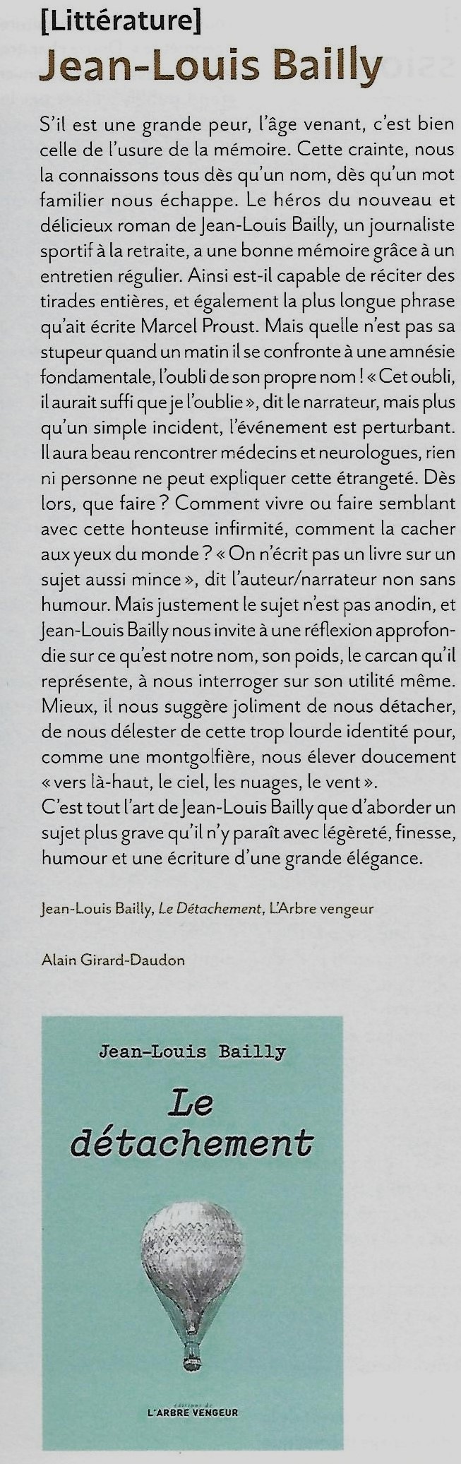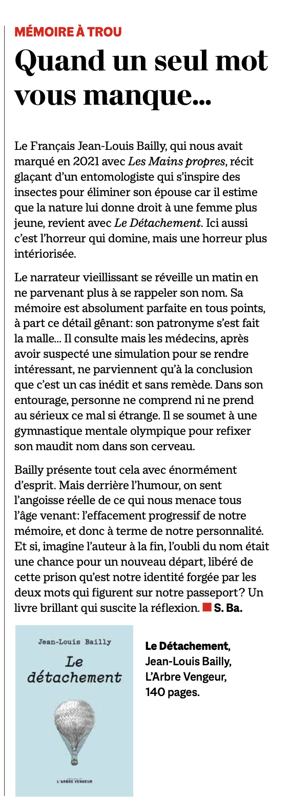 “C’est tout l’art de Jean-Louis Bailly que d’aborder un sujet plus grave qu’il n’y paraît avec légèreté, finesse, humour et une écriture d’une grande élégance.”