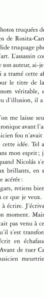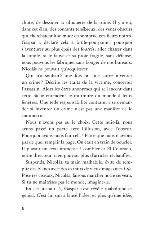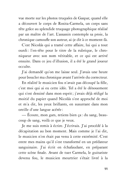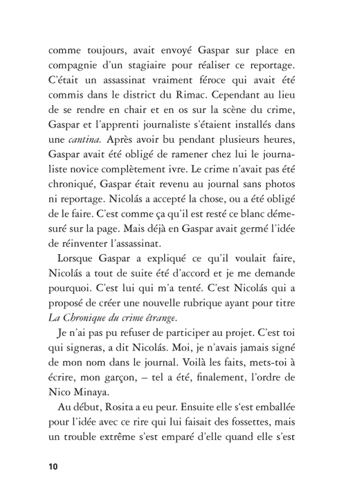 Inventer un crime pour occuper la page blanche d’un quotidien : belle tentation et coup de maître pour Calderón, pigiste en mal de gloire littéraire qui se retrouve pris au piège de son idée. Car le succès de son meurtre insolite « Le musicien assassiné et la belle au bois dormant », accompagné de photos truquées, l’entraîne dans une pente dangereuse, l’obligeant à inventer de nouveaux faits divers extravagants avant d’être confronté à l’insaisissable Dompteur de mouches, qui lui raconte ses propres crimes et lui lance un défi.