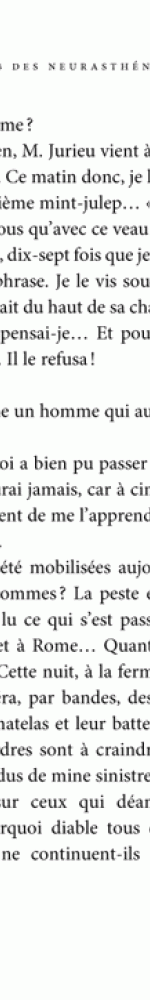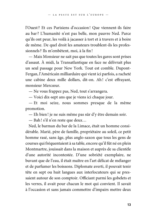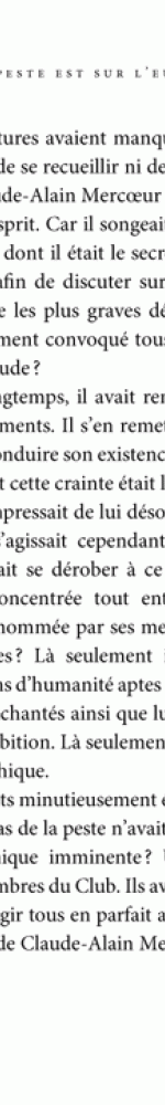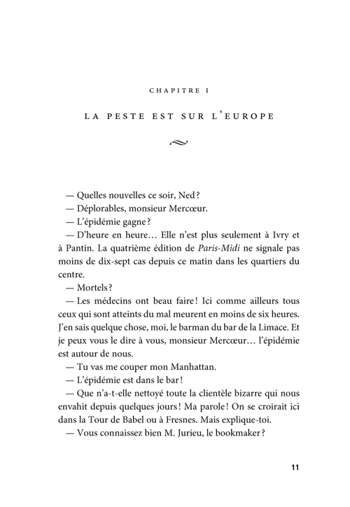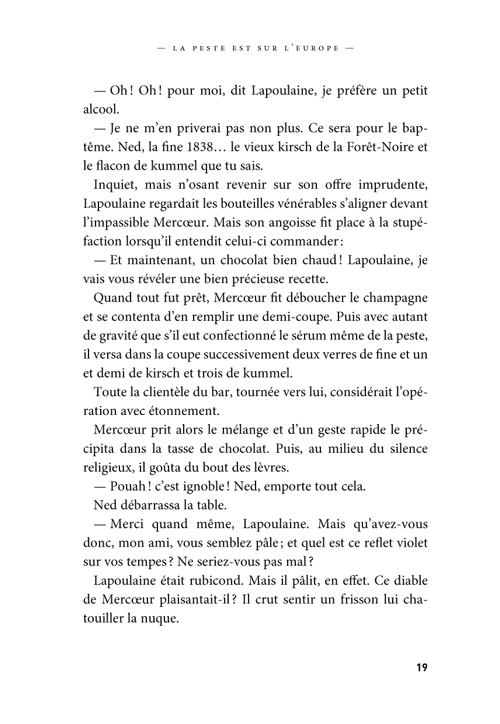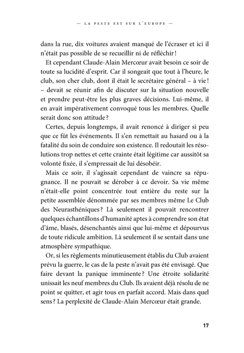 « Notre ami Mercoeur doit donc partir – je puis vous le dire – à la recherche d’un enfant perdu. Mais il est bien évident qu’il ne saurait accomplir cette randonnée par les moyens affreux du commun des mortels, surtout en ces temps de panique et de peste universelles… Mercoeur en est incapable… »