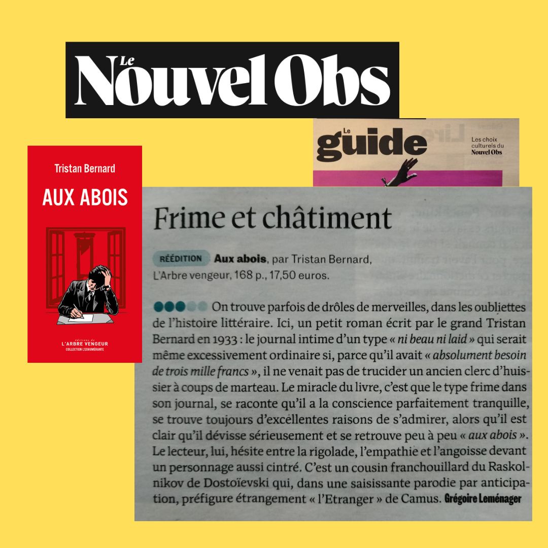 “Merci aux éditions de l’Arbre vengeur d’avoir exhumé ce texte !”