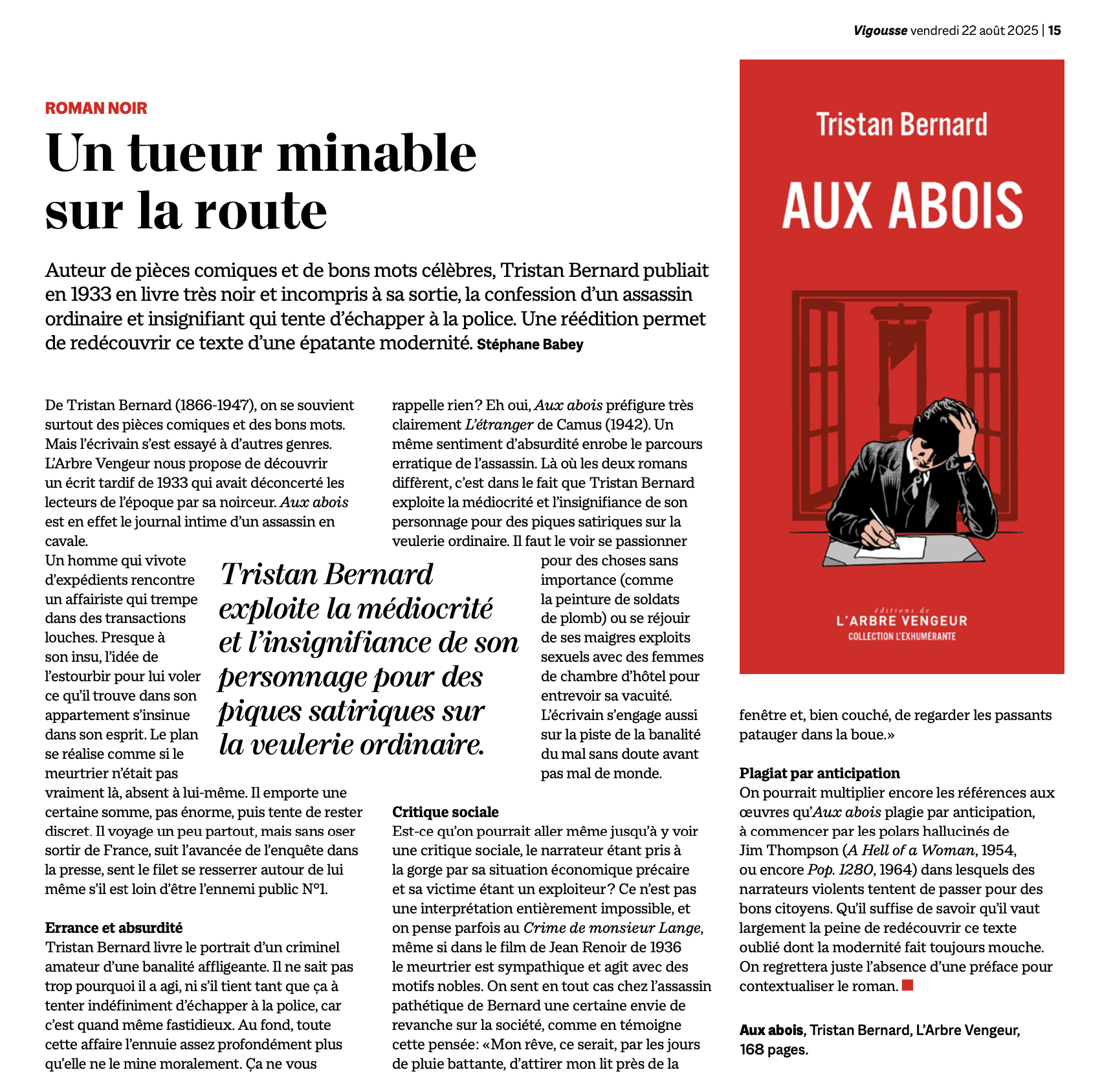 “L’Arbre vengeur a la bonne idée de rééditer ce journal imaginaire d’un assassin.”