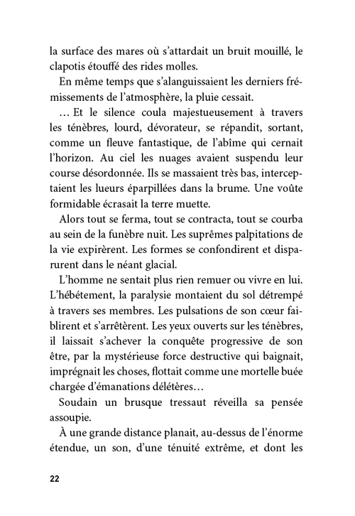 Alors qu’une tempête se déchaîne sur la campagne nocturne, un vieux colporteur se réfugie dans une lugubre bâtisse qu’il croit déserte. Mais une présence se signale, hostile, angoissante. L’esprit du pauvre égaré se laisse envahir par la terreur au point qu’il en succombe. Son meurtrier, cruel sans intention homicide, découvre alors qu’on ne vit pas impunément dans le souvenir de son crime, surtout lorsque le cadavre, qu’on n’ose approcher, se venge, à titre posthume.