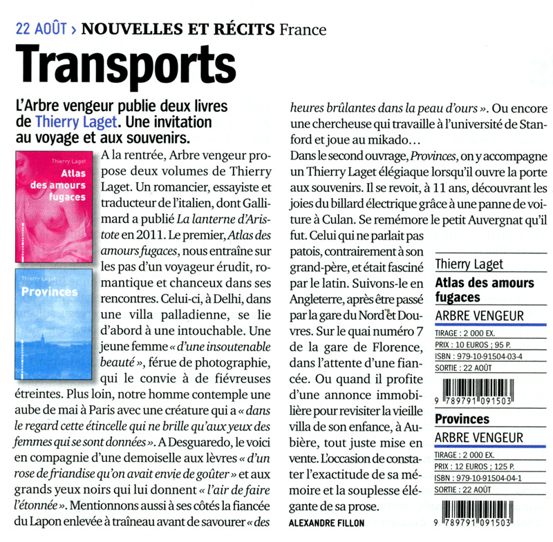 “L’occasion de constater l’exactitude de la mémoire [de Thierry Laget] et la souplesse élégante de sa prose.”