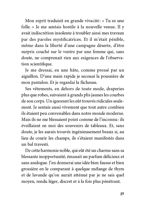 Sur un thème qui inspirera des auteurs plus ou moins fameux, Han Ryner le premier a imaginé une remarquable et passionnante plongée, vibrante de poésie. Il a surtout cherché « un prétexte à blâmer nos orgueils, à nous qui par les sens, sommes inférieurs à tant d’animaux, à nous qui souvent croyons tout savoir et dont l’intelligence très probablement doit errer magnifiquement parmi une foule d’erreurs insoupçonnées ».