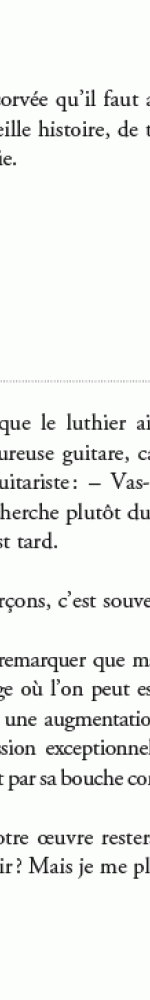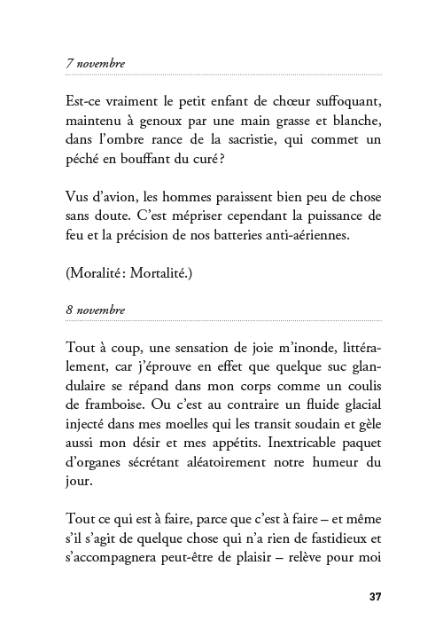 « En fait, c’est assez simple, il y a les écrivains qui se complaisent dans le réel, qui fourrent leurs phrases dedans, qui en rajoutent une couche ; et les écrivains qui prennent le réel dans les rets tranchants de leurs phrases afin de le retailler à leur guise.