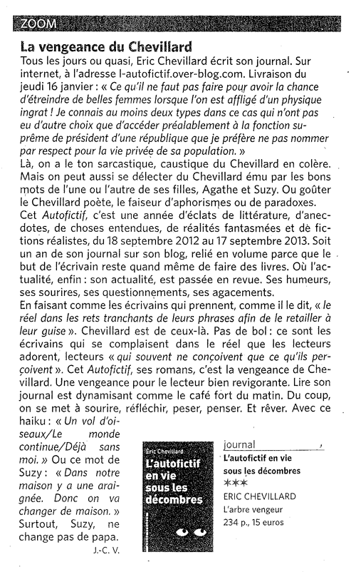 “Lire le Journal de Chevillard est dynamisant comme le café fort du matin.”