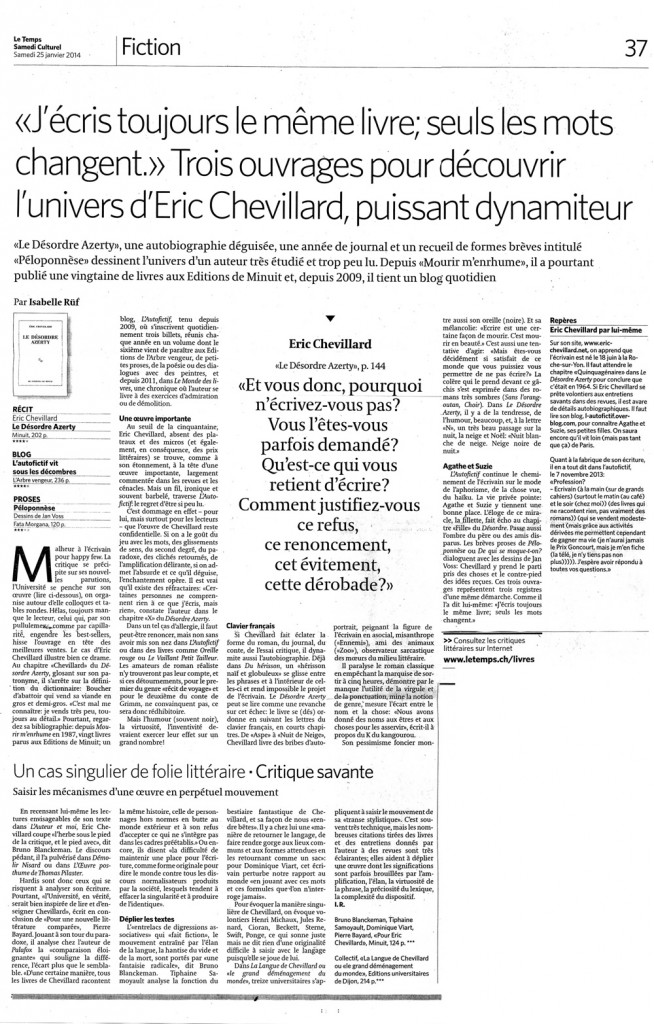 “Chevillard est doté d’une plume fabuleuse au service d’une imagination débridée.”