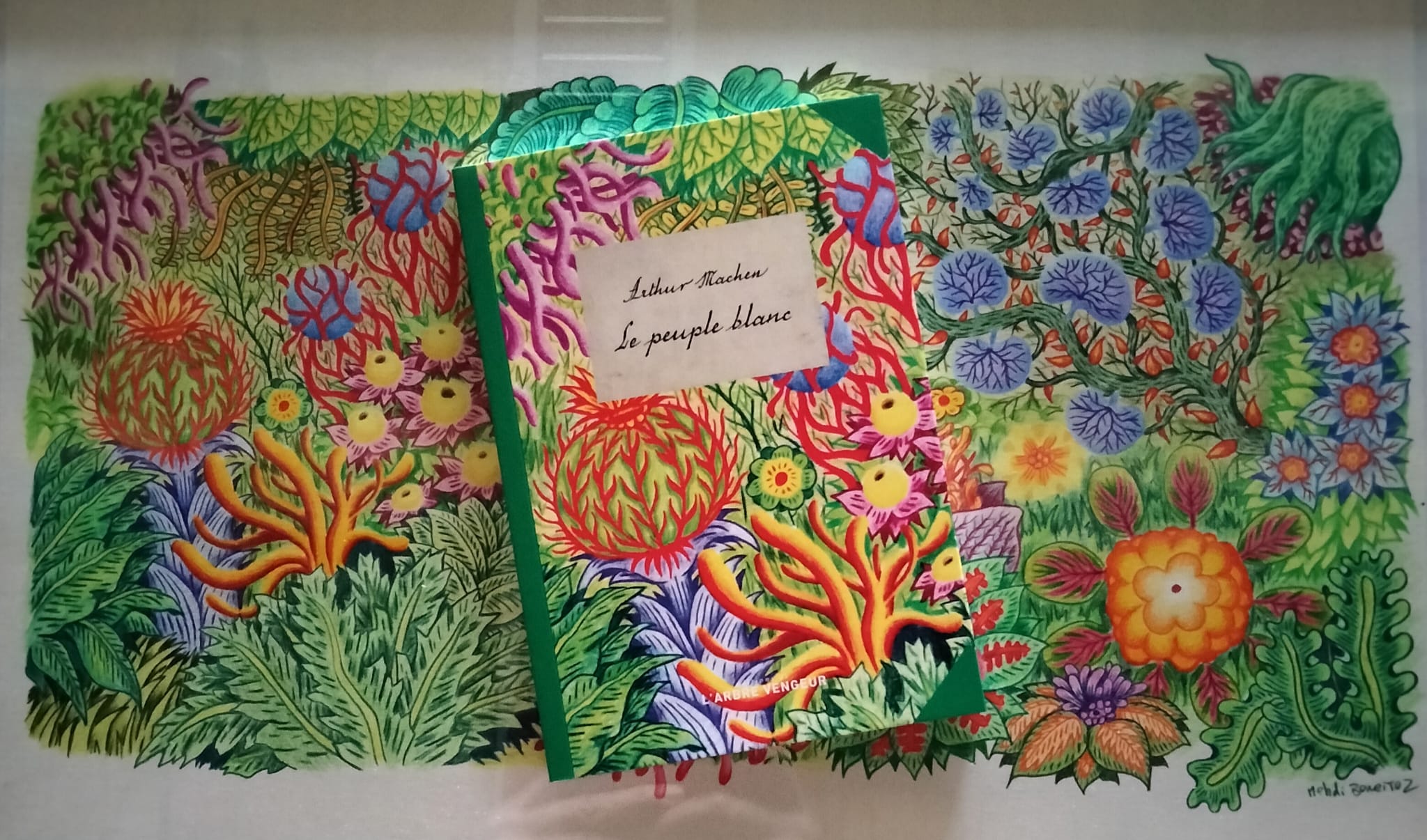 Quand notre auteur et ami Fabien Courtal, dont la discrétion n’a d’égal que le talent, nous a proposé de traduire la plus étrange des œuvres de l’écrivain gallois, on imagine notre joie. Peaufinant et retravaillant sa traduction, il a déposé avec précaution dans nos mains tremblantes ce joyau qu’à notre tour nous avons transmis à un autre vrai discret, Mehdi Beneitez, afin qu’il le sertisse de ses envahissants végétaux. Voilà désormais en librairie cette édition du Peuple blanc qui, à défaut de faire notre fortune, fera notre bonheur et pourquoi ne pas le dire, notre fierté. Le tirage en est limité à mille exemplaires, c’est beaucoup ou c’est peu, ce n’est en tout cas pas trop pour un livre de cette force.