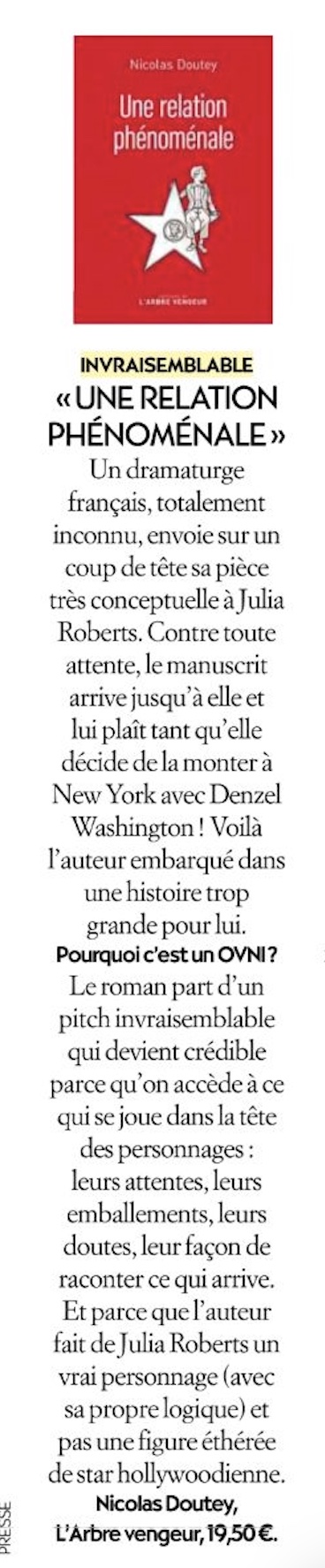 “Avec humour et audace, Nicolas Doutey nous rappelle qu’il est bon de croire en ses rêves, car ils pourraient bien se réaliser… Un premier roman épatant à découvrir.”