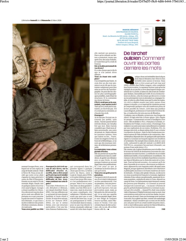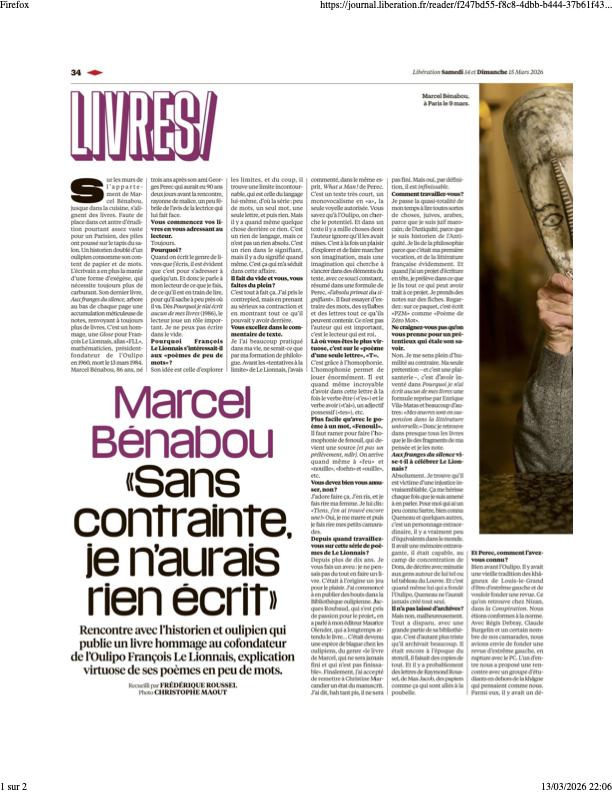 “Quelque chose est irrésistible dans la façon dont Marcel Bénabou fait vibrer le lien invisible entre auteur et lecteur.”