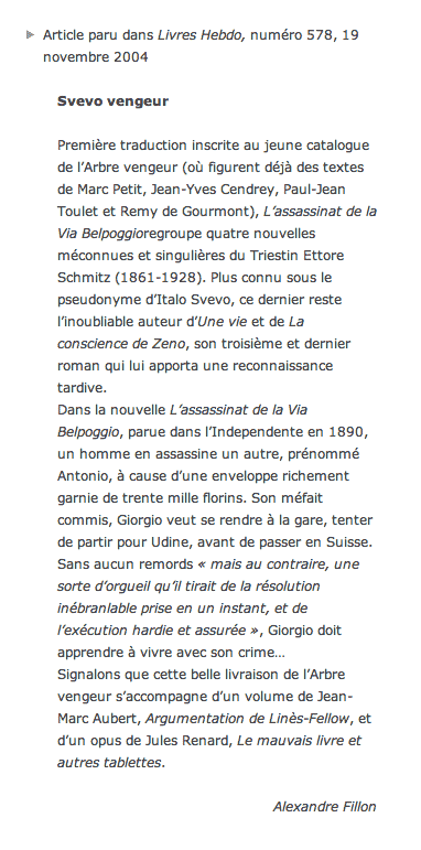 À travers les quatre nouvelles rassemblées ici, c’est tout l’art d’un Svevo interrogateur et la finesse de son trait psychologique qui réapparaissent. Contemporain de Tchekhov auquel on l’a souvent comparé, arpenteur de la forme brève qui lui permettait de tout oser, il impose encore sa voix grave et étonnée au lecteur patient et peu pressé d’aujourd’hui.