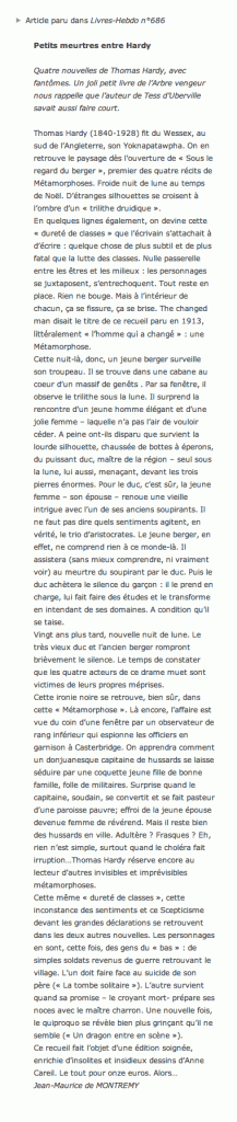 Maître dans l’art de décortiquer «les petites ironies de la vie», Thomas Hardy possédait aussi le talent de se pencher, en quelques pages, sur les grandes.