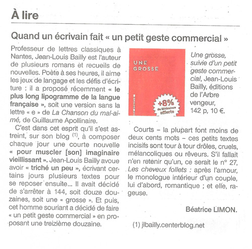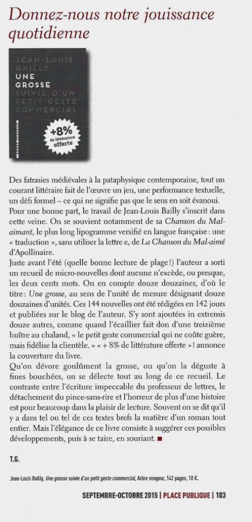 “Qu’on dévore goulûment la grosse, ou qu’on la déguste à fines bouchées, on se délecte tout au long de ce recueil.”