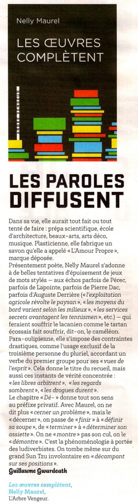 “Nelly Maurel s’adonne à de belles tentatives d’épuisement de jeux de mots stylés […] qui feraient souffrir le lacanien comme la tartan écossais fait souffrir, dit-on, le caméléon.”