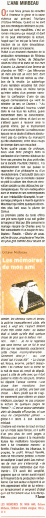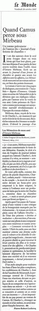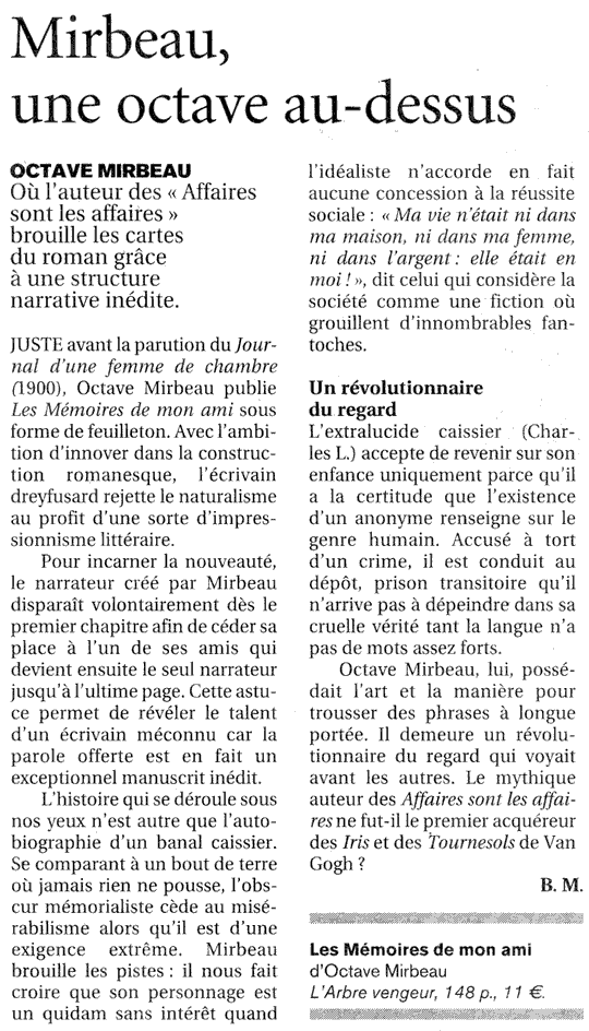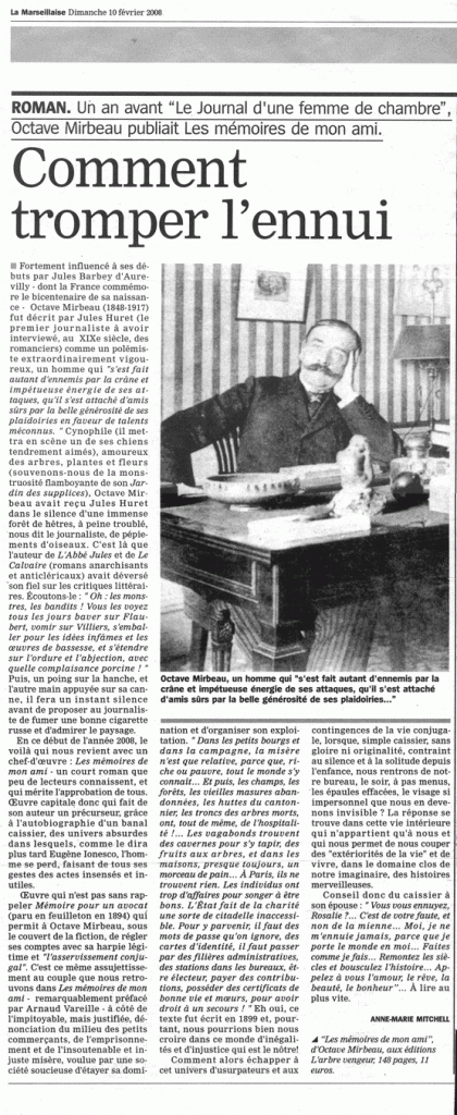 “Octave Mirbeau […] possédait l’art et la manière pour trousser des phrases à longue portée. Il demeure un révolutionnaire du regard qui voyait avant les autres.”