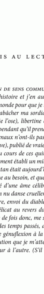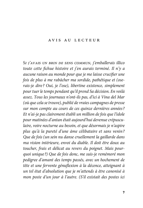 En attendant que s’ouvre la porte de l’éternité, le mémorialiste de ces pages fiévreuses entreprend de nous raconter son existence de riche héritier devenu libertin effréné après une jeunesse de dévotion culpabilisante. Flanqué d’un valet, Catesby, qui s’est imposé à lui et dont il ne peut se défaire, il a poursuivi à travers le monde la chimère de retrouver son premier amour, la sublime Antonella que lui a ravi… le diabolique serviteur.