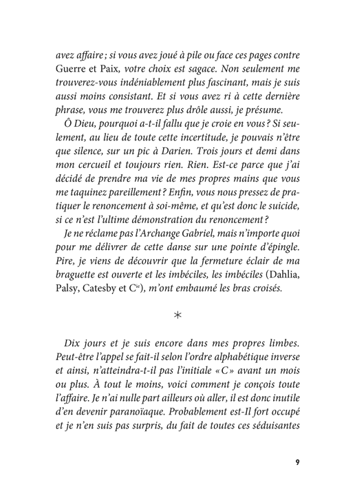 Entremêlant les fils d’une destinée où le réel semble se fondre avec l’univers du rêve et du fantasme, ce récit vertigineux, traversé de l’ironie la plus cinglante, réserve à son lecteur, médusé par l’intelligence vibrionnante qui le parcourt, des surprises de taille. La moindre n’est pas son final, stupéfiant.
