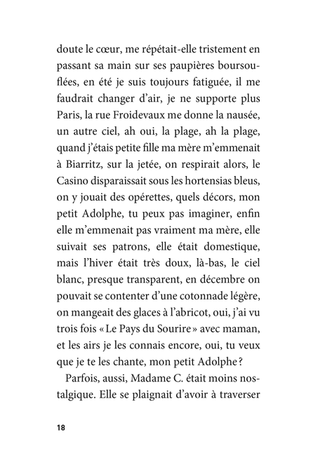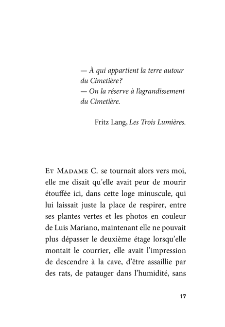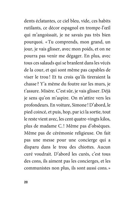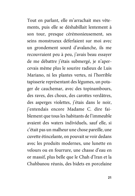 C’est sans compter sur Madame C., sa concierge, qui guette amoureusement son passage du haut de ses deux mètres pour le contraindre à des actes qu’une quatrième de couverture doit taire.
