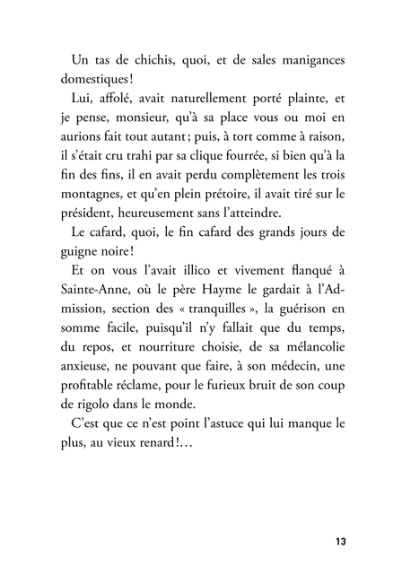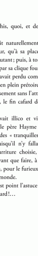 Le drame affreux qui vous est conté ici, dans une langue verte comme l’absinthe et avec un humour noir comme la nuit de la folie, vous fera passer un délicat frisson le long de l’échine et du cou…