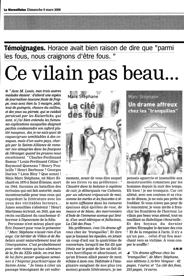 “Marc Stéphane mérite bel et bien de sortir de l’oubli.”