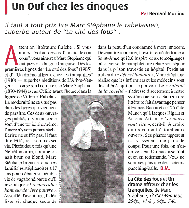 L’Arbre vengeur complète avec ce petit volume sa réédition de La cité des fous de Marc Stéphane, un écrivain qu’il est urgent de redécouvrir.