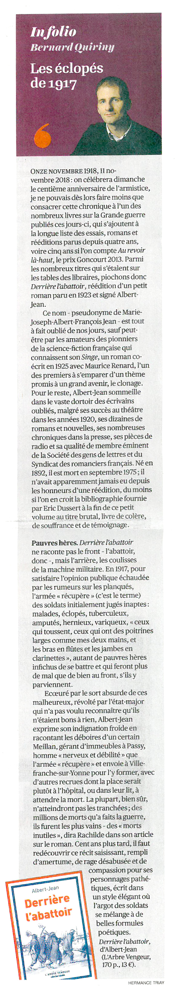 “Assurément, il vaut encore la peine de lire Albert-Jean cent ans après les faits.”