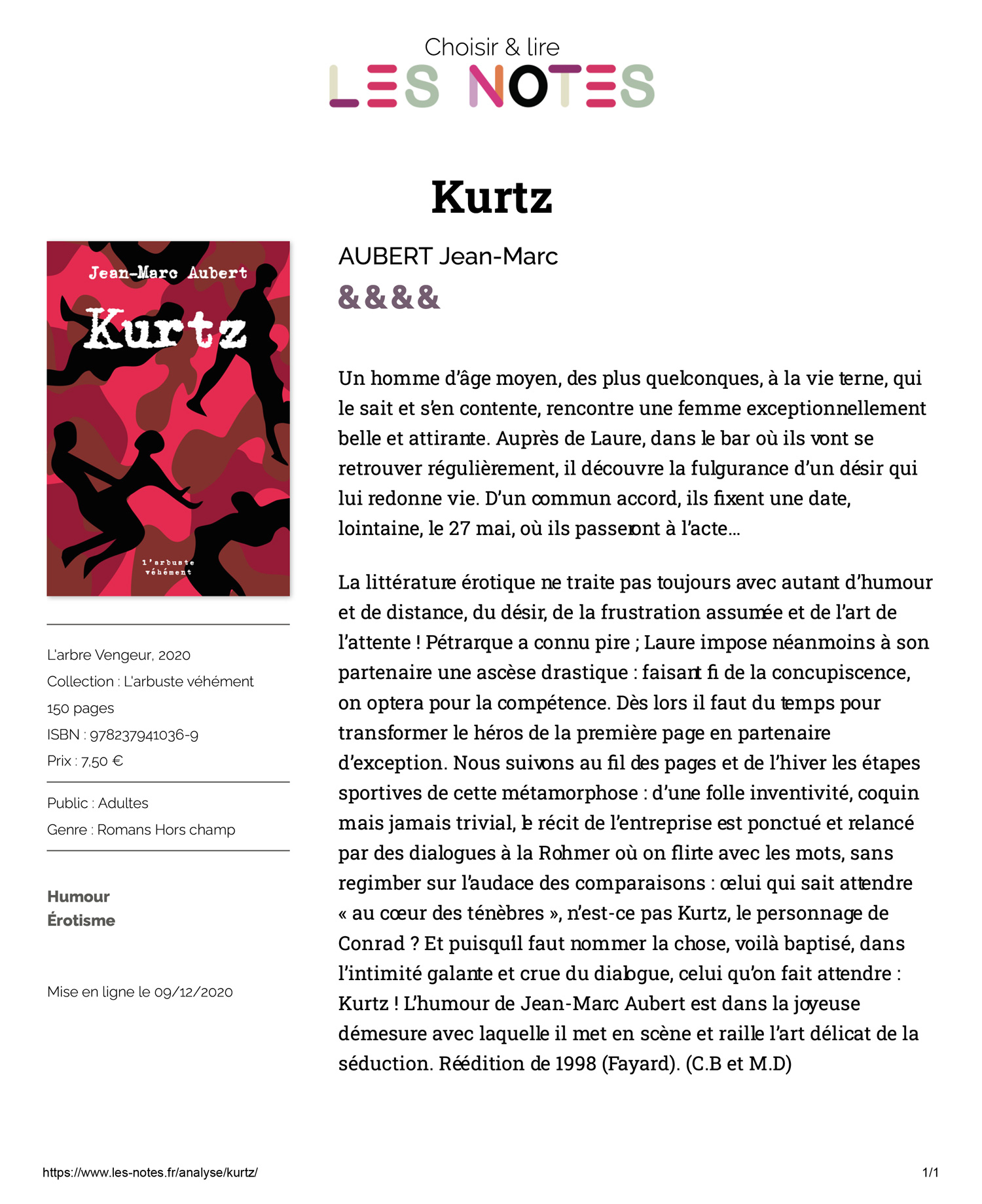 Livre au délire controlé sur la frustration, Kurtz confirme le statut hors paire du singulier Aubert, notre auteur fétiche.