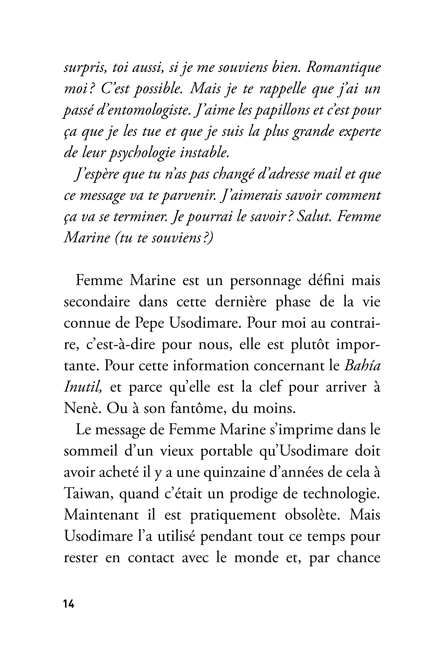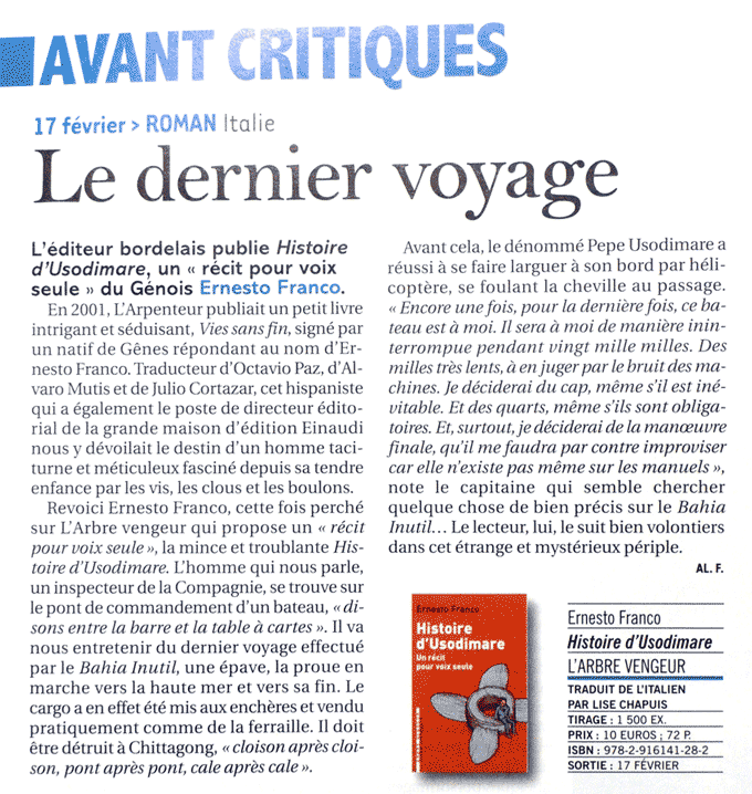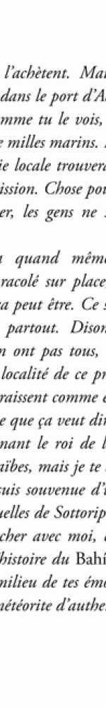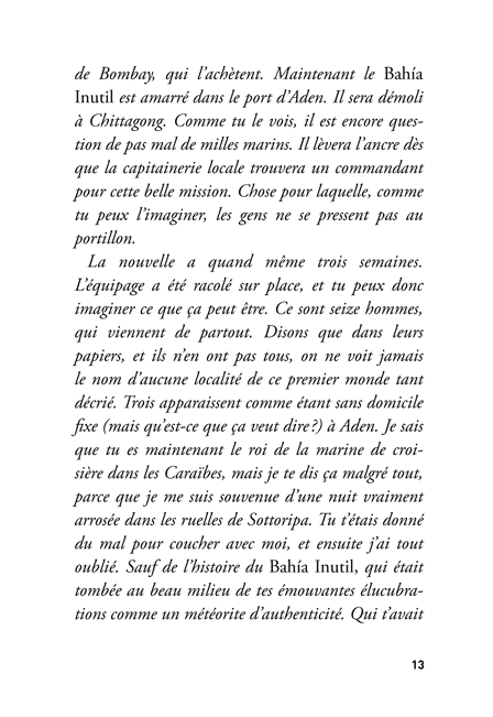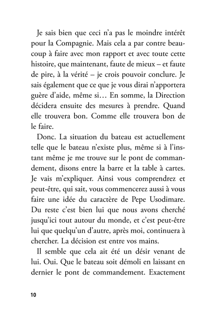 Descendant d’une lignée de héros nés de l’imagination de Melville, Conrad ou Pratt, il est prêt à subir les charmes et les dangers d’une mer où mirages, pirates et sortilèges ont changé d’allure mais pas de nature. Intense et beau, ce très bref récit souligne le talent d’un écrivain rare et élégant.