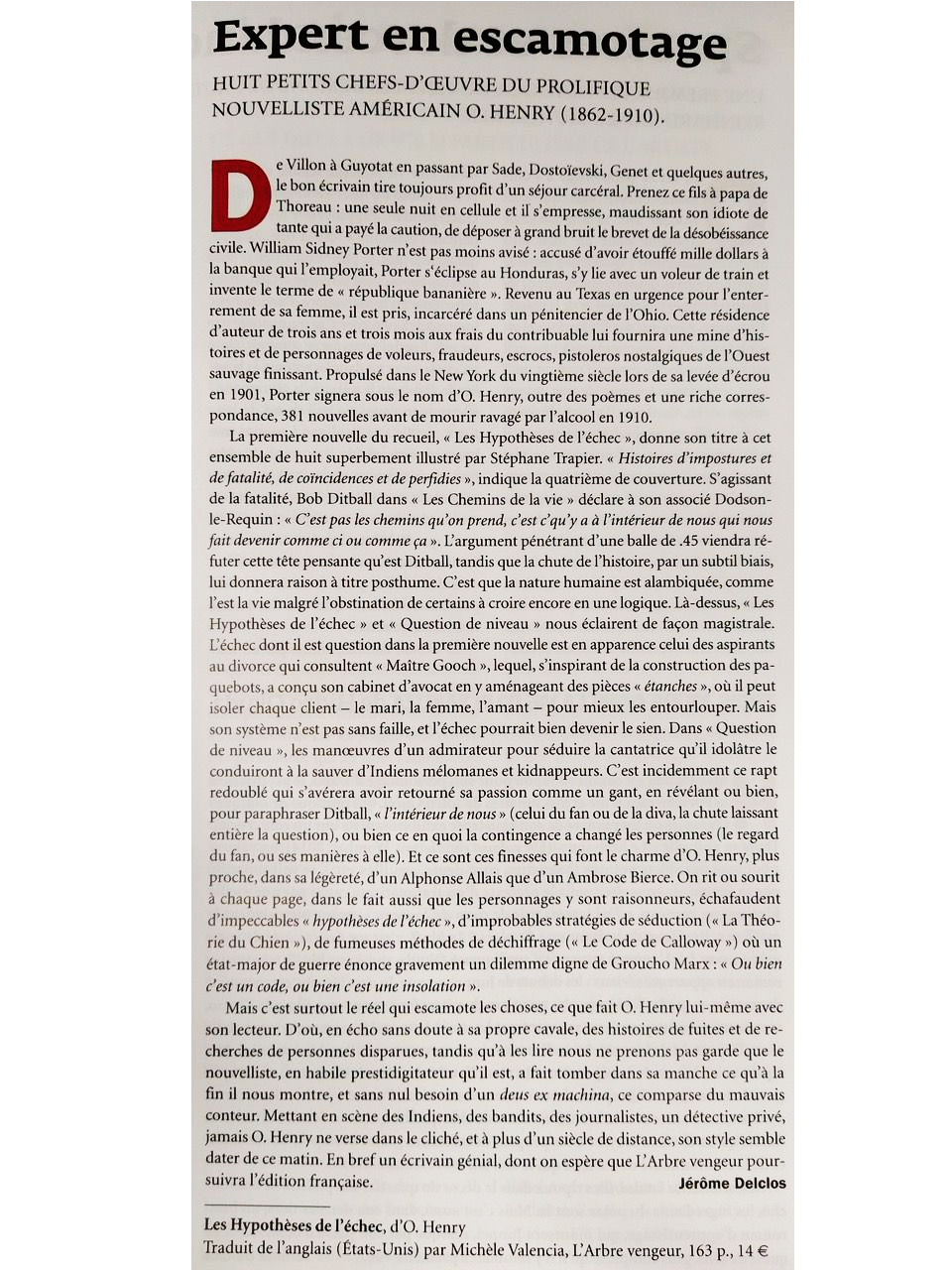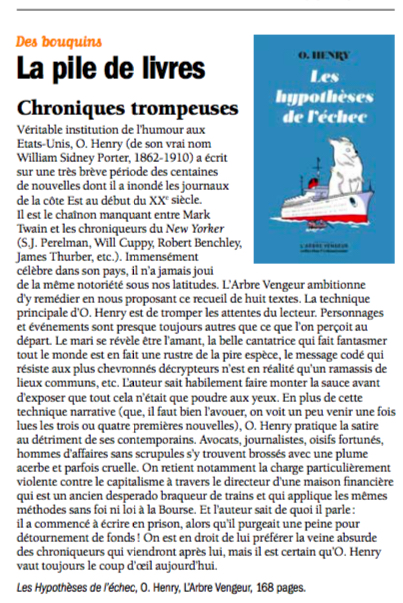 “On y découvre l’humour constant d’O.Henry et une plume parfaitement maîtrisée.”