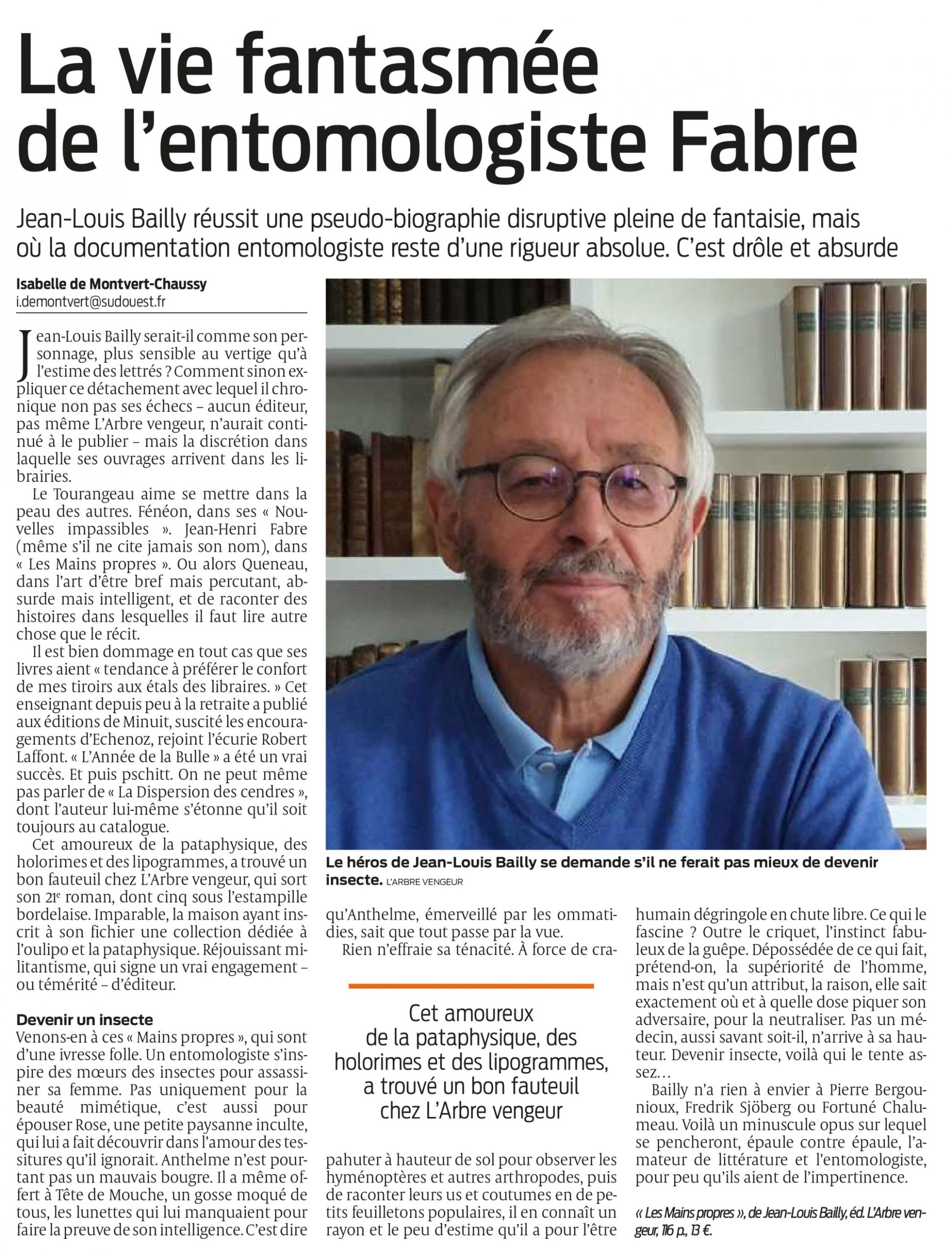 “Jean-Louis Bailly réussit une pseudo-biographie disruptive pleine de fantaisie, mais où la documentation entomologiste reste d’une rigueur absolue. C’est drôle et absurde.”