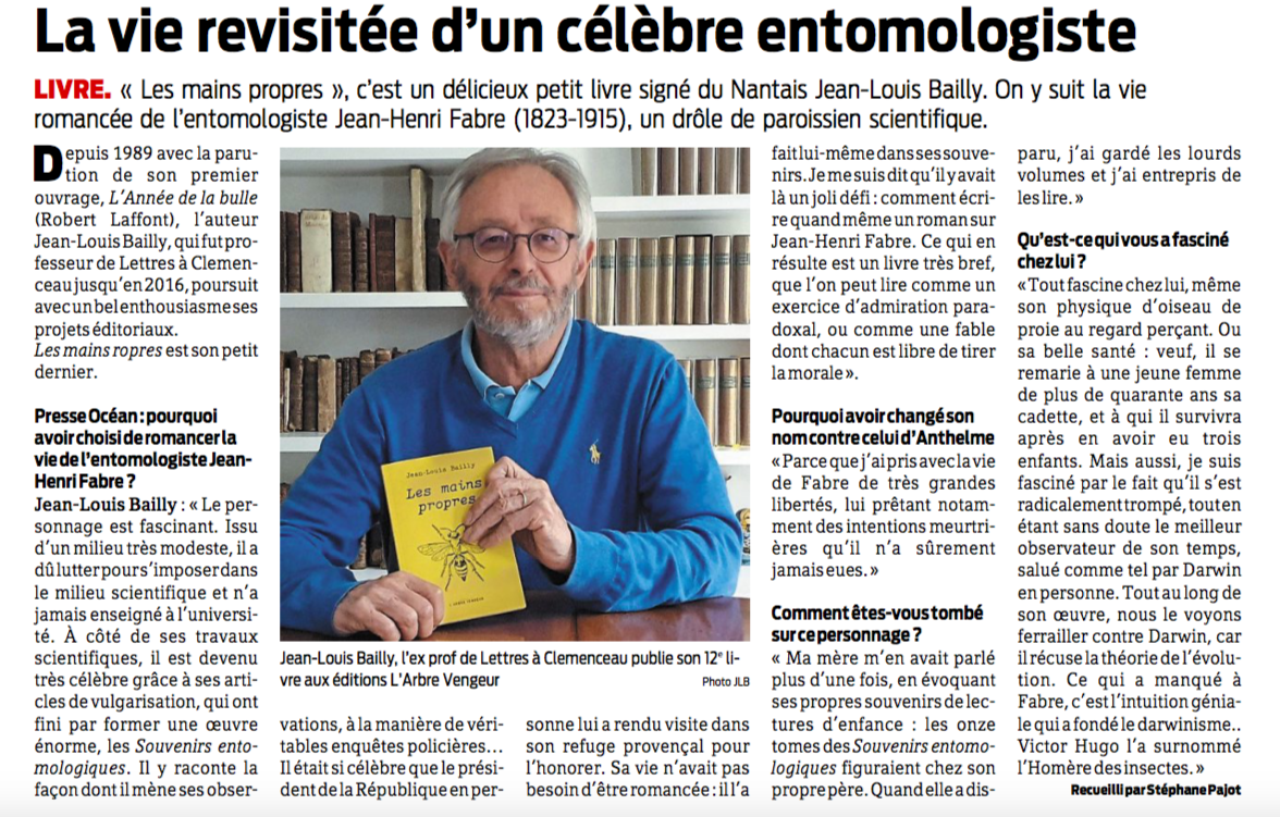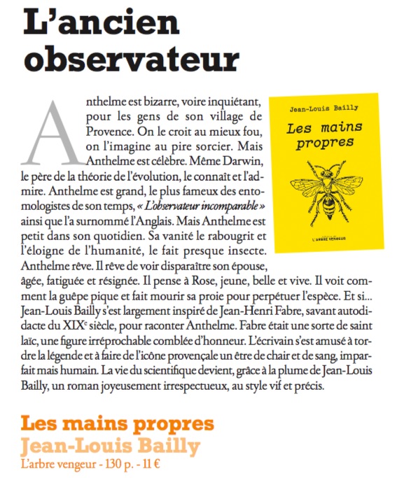 Sans jamais citer le nom de Jean-Henri Fabre qui lui a servi de modèle, Jean-Louis Bailly a ciselé un petit roman perfide, la vie minuscule d’un grand homme caché derrière sa réputation. Vif et intelligent.