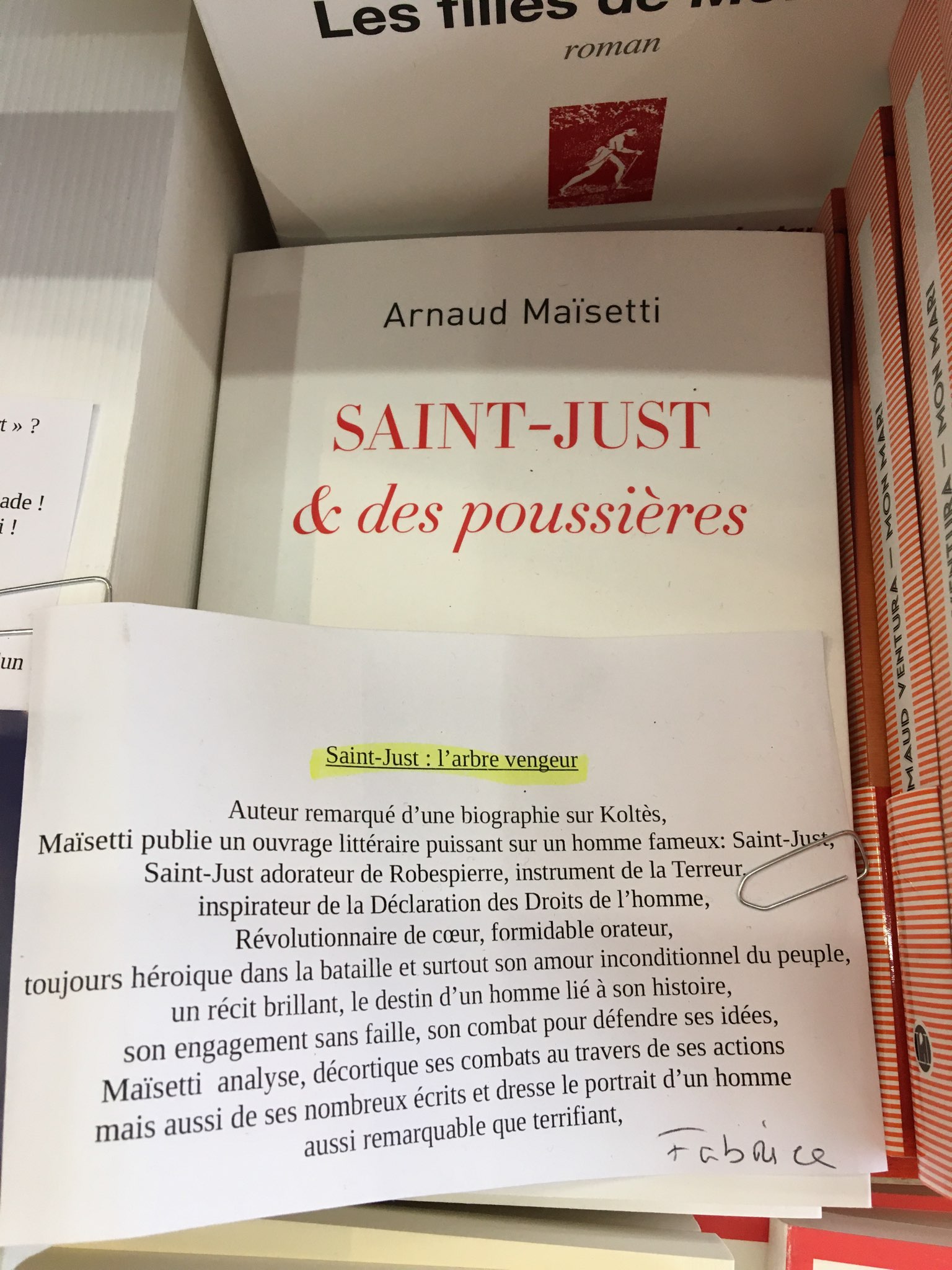 “Dans un style alerte, l’auteur nous offre l’histoire de Saint-Just, jeune homme pressé et brillant, révolutionnaire intransigeant et proche de Robespierre, plus jeune député à la Convention et guillotiné alors qu’il n’avait pas 27 ans ! (et en plus de quoi revoir l’histoire de la Révolution de manière fort agréable…).”