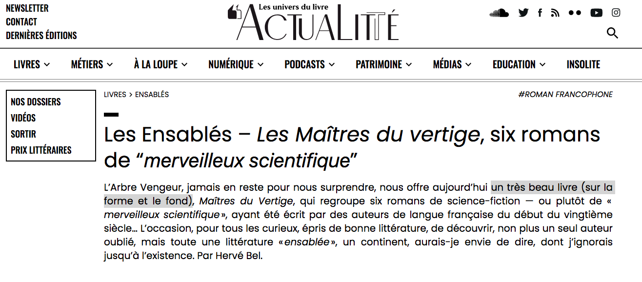 “Il est temps, avec ces “Maîtres du vertige”, de rajouter un chapitre à nos manuels de littérature !”