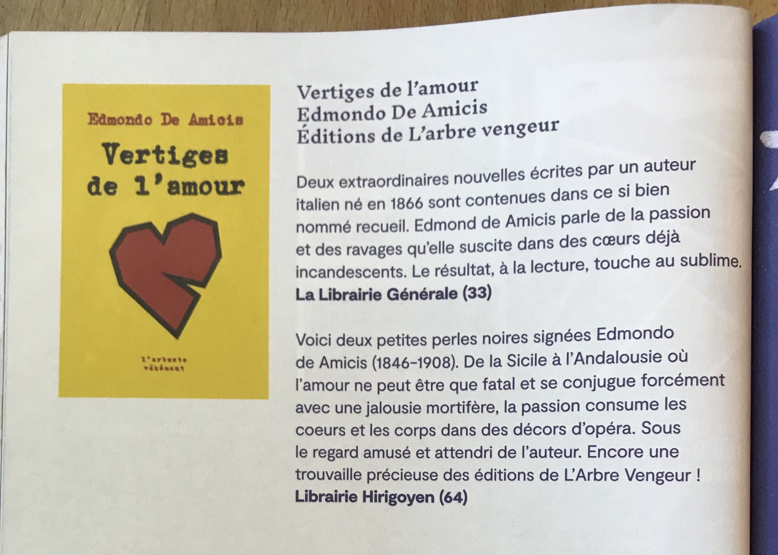De la Sicile, où Carmela est prisonnière de sa malheureuse passion, à Séville, cité où la jalousie peut prendre des atours impressionnants, De Amicis raconte avec délectation à quel point rêver trop fort conduit à de terribles extrémités…