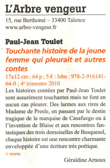 Paul-Jean Toulet reste dans le coeur de ceux qui l’ont lu une chère exception. Limpide et étonnant, il a le charme secret de ces écrivains d’un autre siècle qui n’ont jamais atteint la gloire mais dont chaque oeuvre recèle une grâce qui ne lasse jamais.