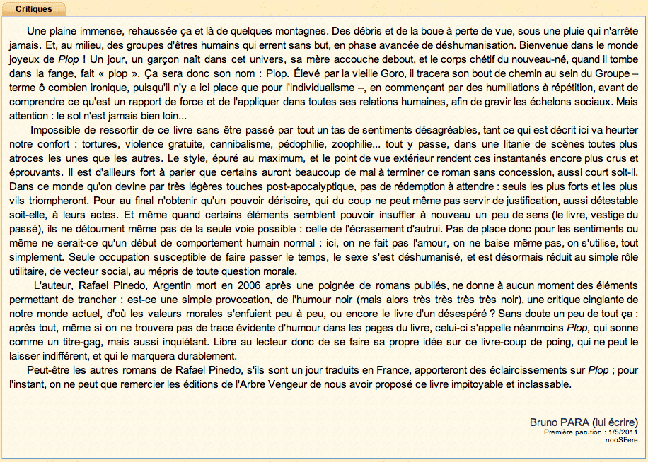C’est son histoire, affolante et inquiétante, que Rafael Pinedo, météorite des Lettres argentines, nous conte dans ce roman cru et sauvage, picaresque et futuriste.