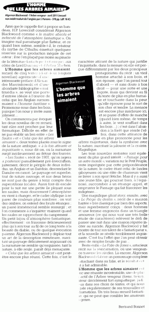 Considéré par Lovecraft comme son égal, célébré pendant des décennies comme l’un des maîtres du fantastique, Algernon Blackwood n’a pas en France le public qu’il mérite. La richesse de son œuvre, la puissance de son inspiration, qui va chercher jusqu’au fond des forêts les mystères qui hantent l’humanité, et sa maîtrise narrative lui vaudraient pourtant de nombreux lecteurs. C’est que Blackwood n’est pas de ces bricoleurs d’épouvante qui se ressemblent tous. Avec lui c’est toute la Création et la Nature, à la fois attirantes et inquiétantes, qui sont convoquées face à des hommes effarés de découvrir ce que leurs âmes recèlent.