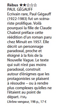 “Roman aussi évanescent que son propos, Rébus est un récit où la tension ne cesse de s’accroître, sans réel but apparent. Ce roman (le préféré de Truffaut) n’est pas sans faire écho à la fin de tragique de son auteur.”